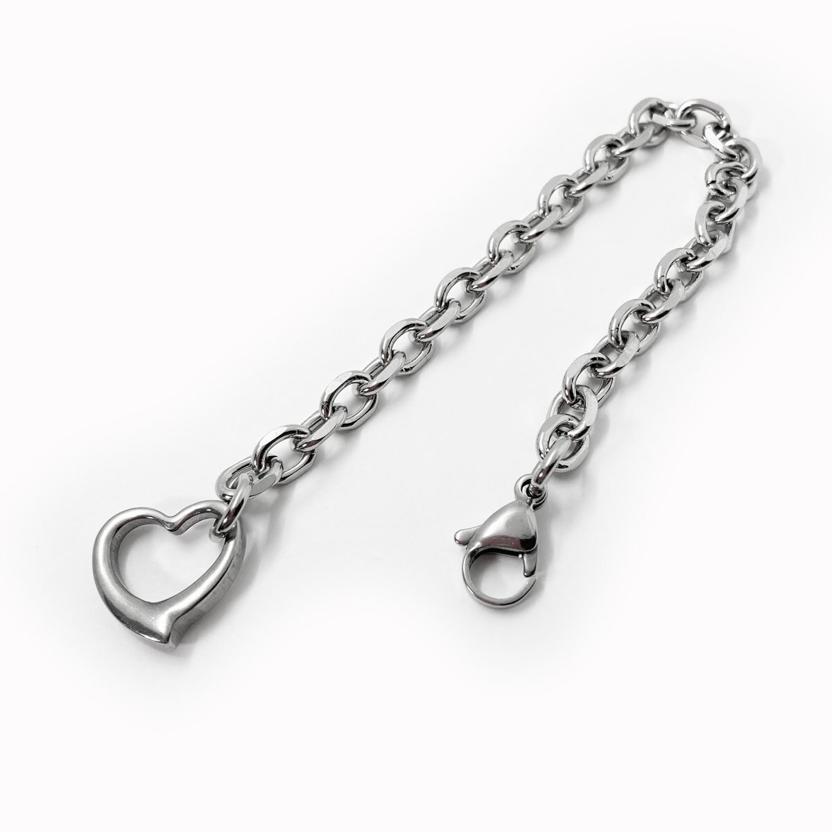 - 幅6mm 約21cm 太め小豆4面カットチェーン ステンレスチェーン ハートチャームブレスレット SB105