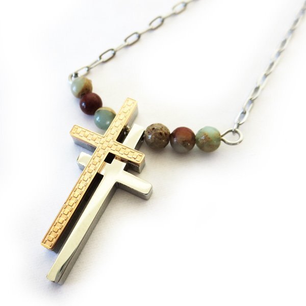- スネークスキンジャスパー クロスネックレス 全長約40cm BN55