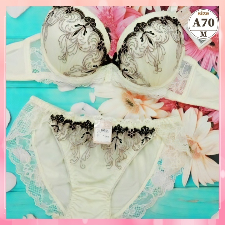 > Za7045◆新品 ブラショーツセット 【A70/M】下着 ランジェリー 丸胸 ガーリーシャンデリア クリーム・茶