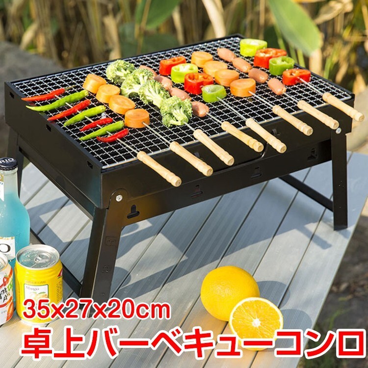 - バーベキューコンロ 鉄 コンパクト 卓上型 折り畳み グリル BBQコンロ 網付き 取っ手付き キャンプ バーベキューグリル 炭火 お花見 ad213