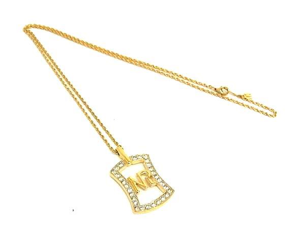 - ■美品■ NINA RICCI ニナリッチ ロゴ ラインストーン ネックレス ペンダント アクセサリー レディース ゴールド系 DK4320