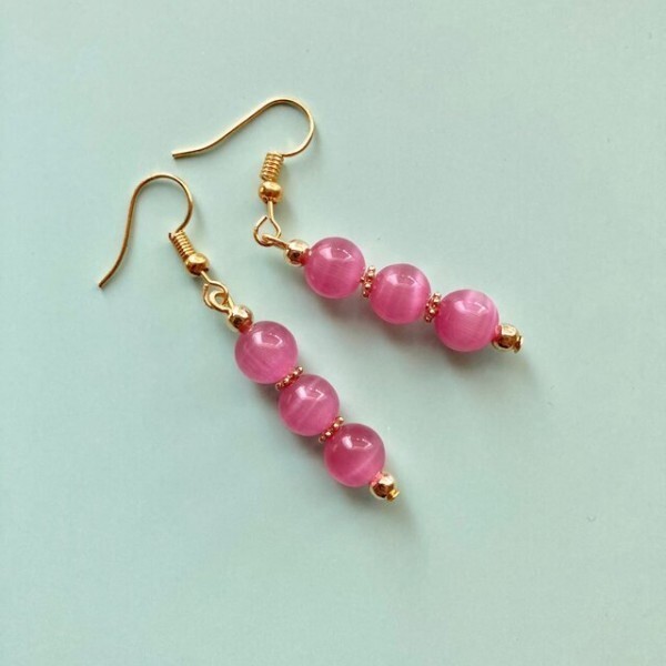 - キャッツアイ ピアス(ピンク) フックピアス 8mm (ゴールド) イヤリング、樹脂フック変更可 樹脂ピアス シンプル ハンドメイド
