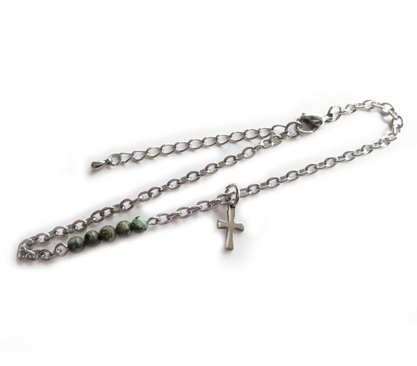 - ステンレスチェーンアンクレット アフリカンターコイズ 約4.4mm 小豆幅3.2mm 27cm(23+4cmアジャスター)