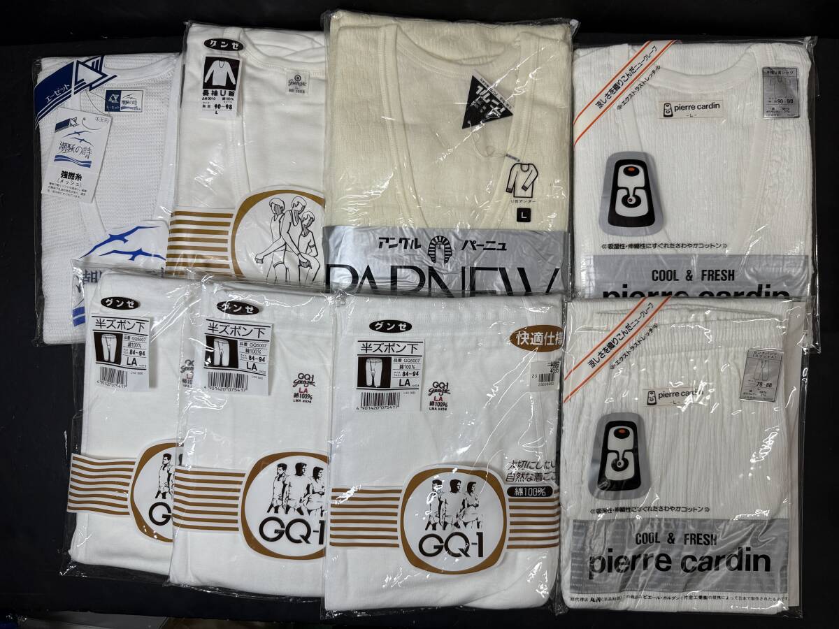 - ★未使用品 メンズ 肌着 まとめ L LA 計8枚 長袖U首/半袖U首/半ズボン下他 男性 下着 グンゼ他 インナー アンダーシャツ パッチ GT685
