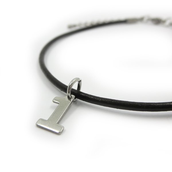 - 1 レザーアンクレット ナンバーチャーム付き ステンレス金具 27cm(23+4cmアジャスター)