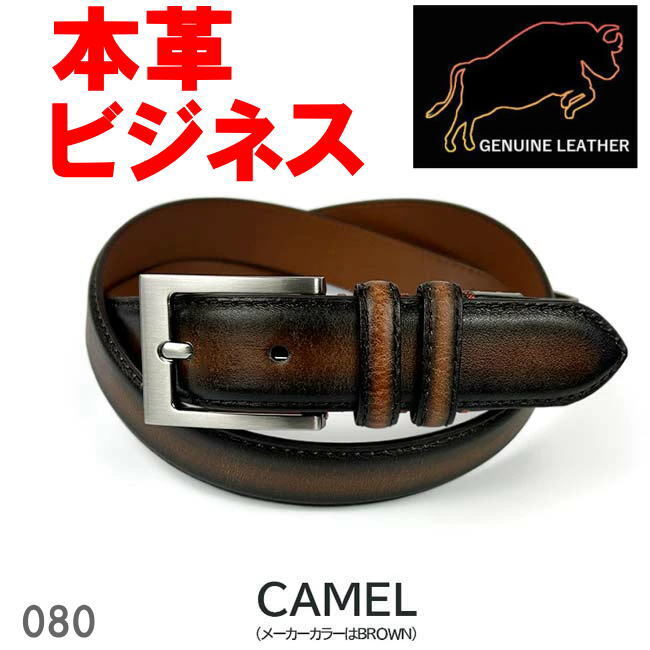 - キャメル ジェニュインレザー 本革 ダブルループビジネス ベルト 3cm 080