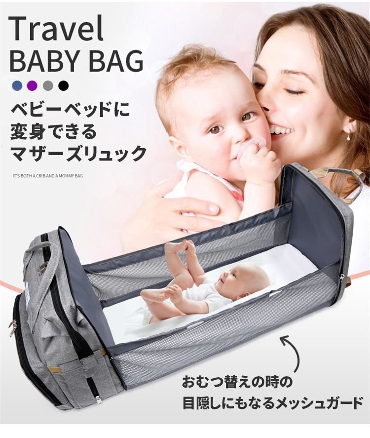 - ママバッグ ママリュック ベビーベッド 2way 持ち運び 折りたたみ 多機能 保冷 保温 マザーズリュック 出産祝い 旅行 ベビー用 グレー