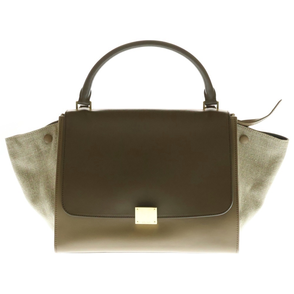 > CELINE セリーヌ トラペーズ ミディアム ベージュ キャンバス×レザー 2WAY ハンドバッグ ショルダーバッグ