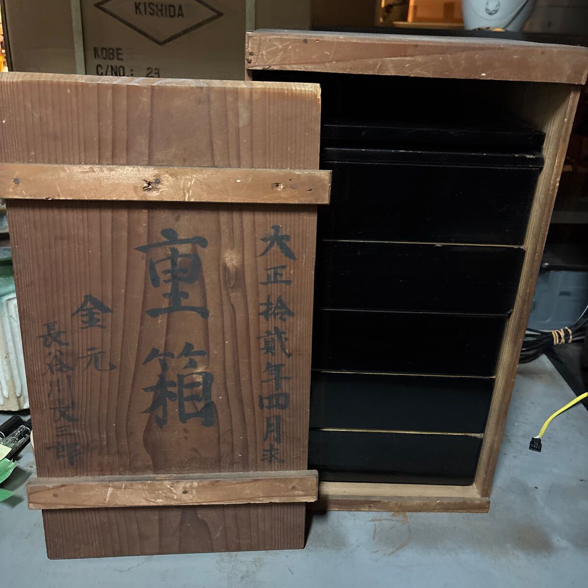 - 11-189 【大正時代】重箱 五重箱 金元 長谷川長三郎 時代物 漆器