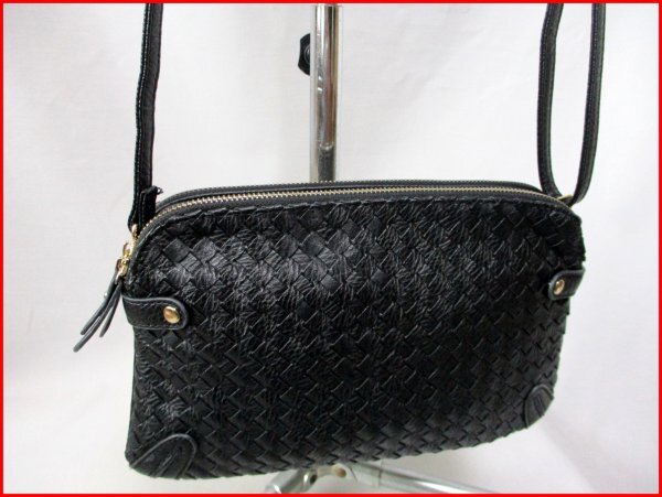 - 2wayバッグ ショルダー・クラッチ◇BK Wファスナー 斜め掛け メッシュ W29cm
