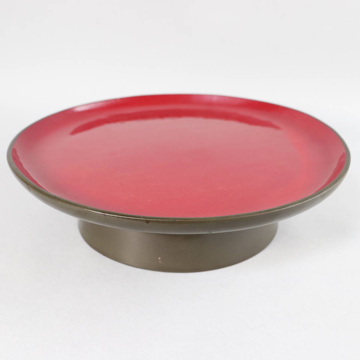 - C 高台付 丸盆 / 台付大盆 御膳 朱塗 緑漆 木製漆器 根来塗 供物台 菓子器 飾台 茶道具 民藝 古民芸 C10