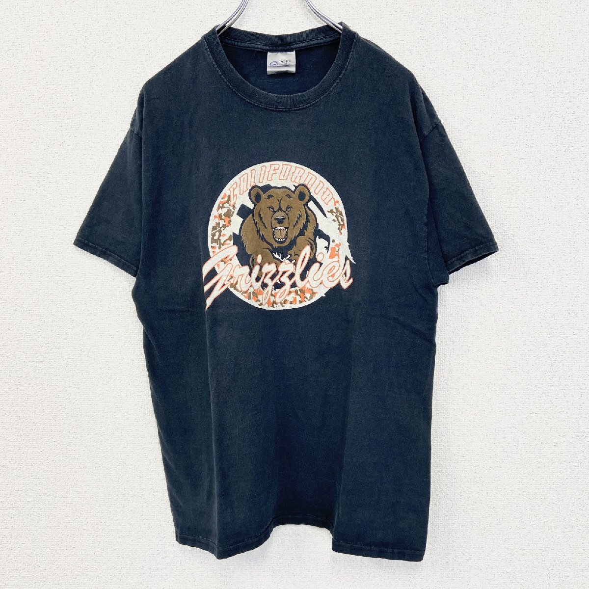 - 古着 used PORT&COMPANY 半袖デザインプリントTシャツ ビッグT 熊 クルーネック カジュアル 黒 Lサイズ