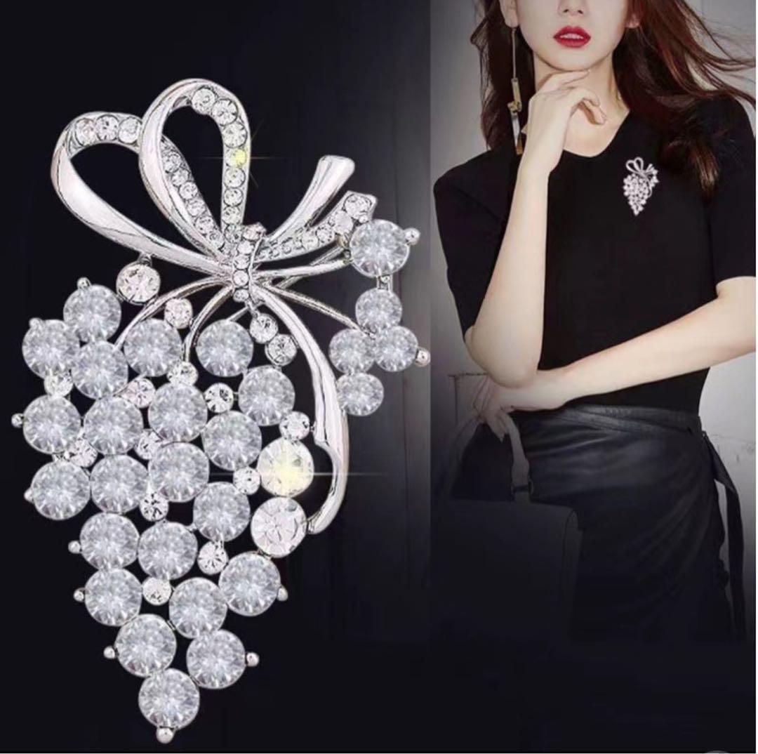 - ブドウリボンブローチ クリスタル アンティーク シルバー
