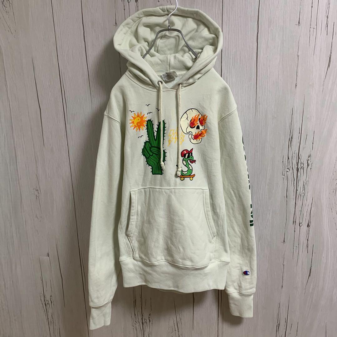 - Champion チャンピオン リバースウィーブ プルオーバーパーカー スウェット トレーナー 刺繍 スリーブロゴ 白 ホワイト