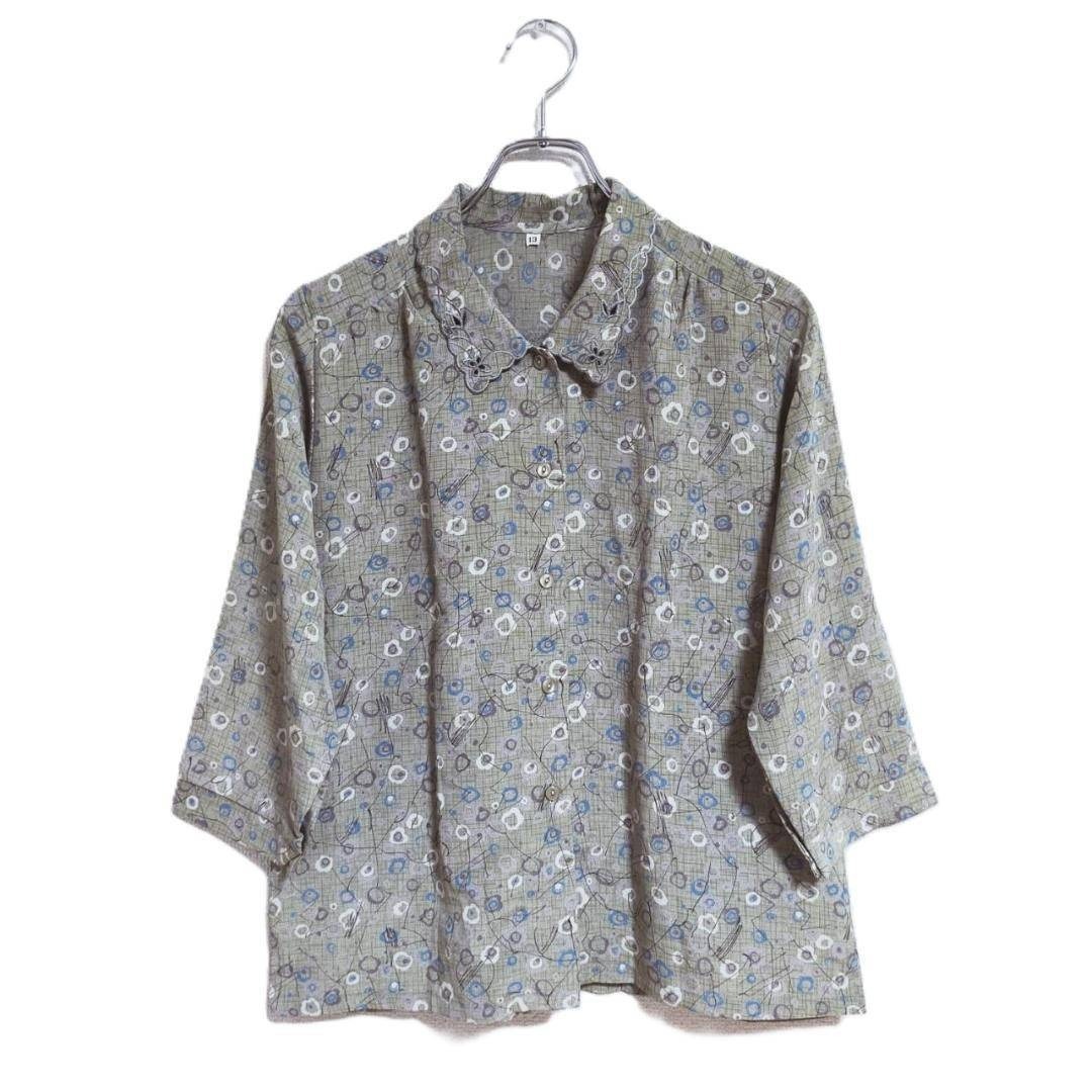 - 長袖ブラウス グレー L 花柄刺繍 クラシカル おしゃれ カジュアル 薄手 春夏