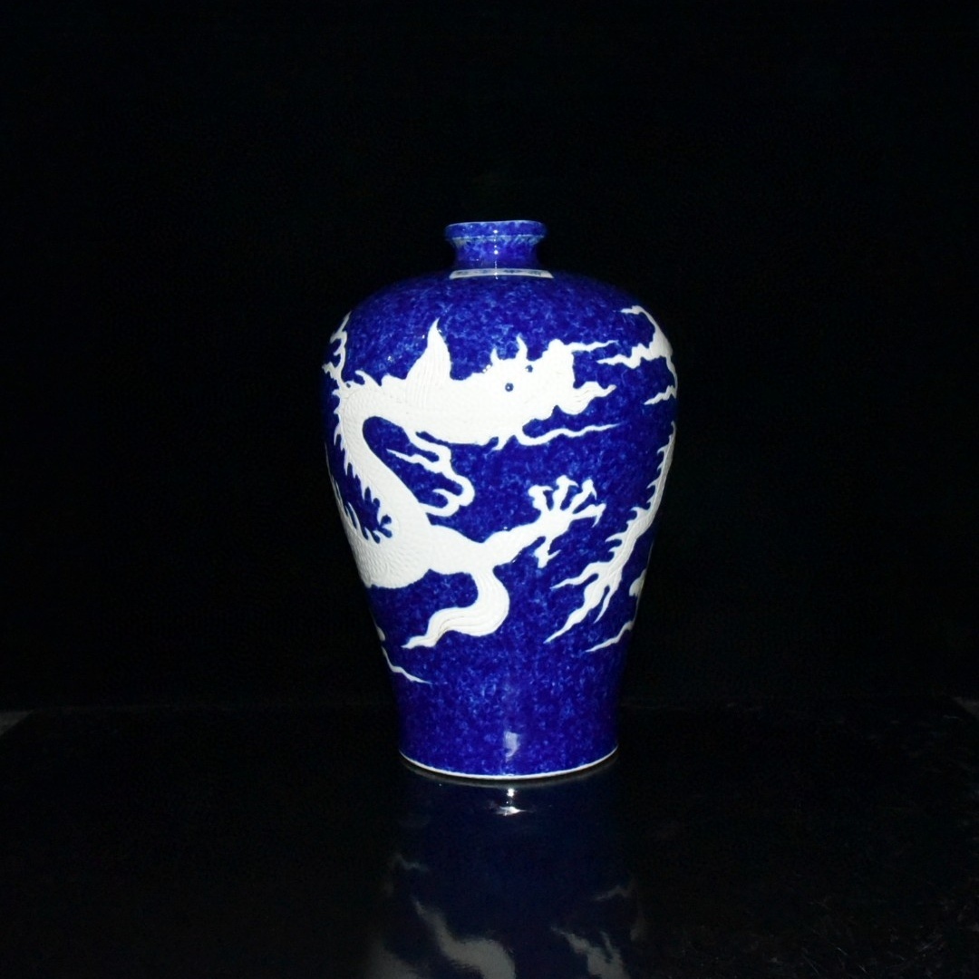 - 『館蔵珍品 明 永樂年制款 古陶瓷品 雪花 藍留白 花卉紋 梅瓶 陶藝』稀少珍蔵品 古賞物 貴重物品 収蔵品 中国古美術 時代物 古董品