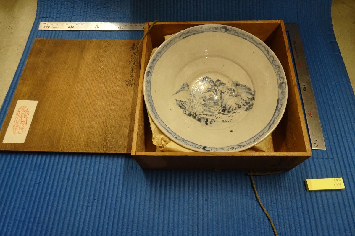 > rarebookkyoto F4B-128 李朝朝鮮 新羅焼人物山水菓子鉢 朴順作 隆窯 共箱 1920年頃 名人 名作 名品