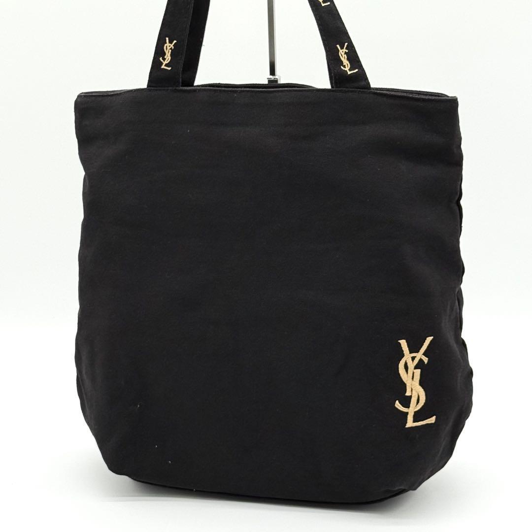 - 【良品】Yves saint Laurent イヴサンローラン トートバッグ A4収納可 肩がけ キャンバス ヴィンテージ レディース ブラック DB121002K