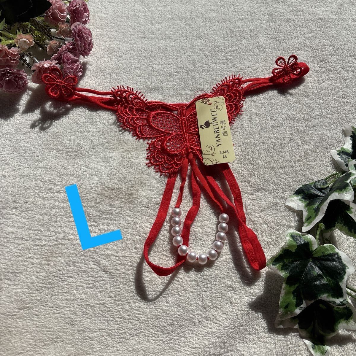 - 新品 Lサイズ エレガント セクシー レッド 豪華刺繍 色っぽい パール Tバック また割れ 穴あき レディース下着 Gストリング