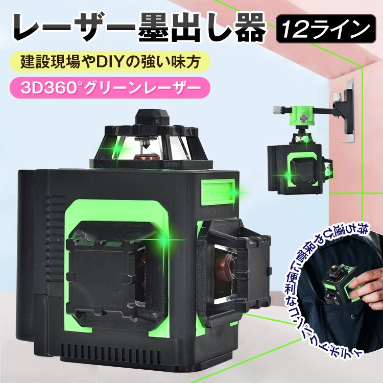 - 送料無料 墨出し器 レーザー墨出し器 グリーンレーザー 高輝度 レーザー 12ライン 3x360°水平器 30m 自動補正 DIY 傾斜 建築 基礎 sg253