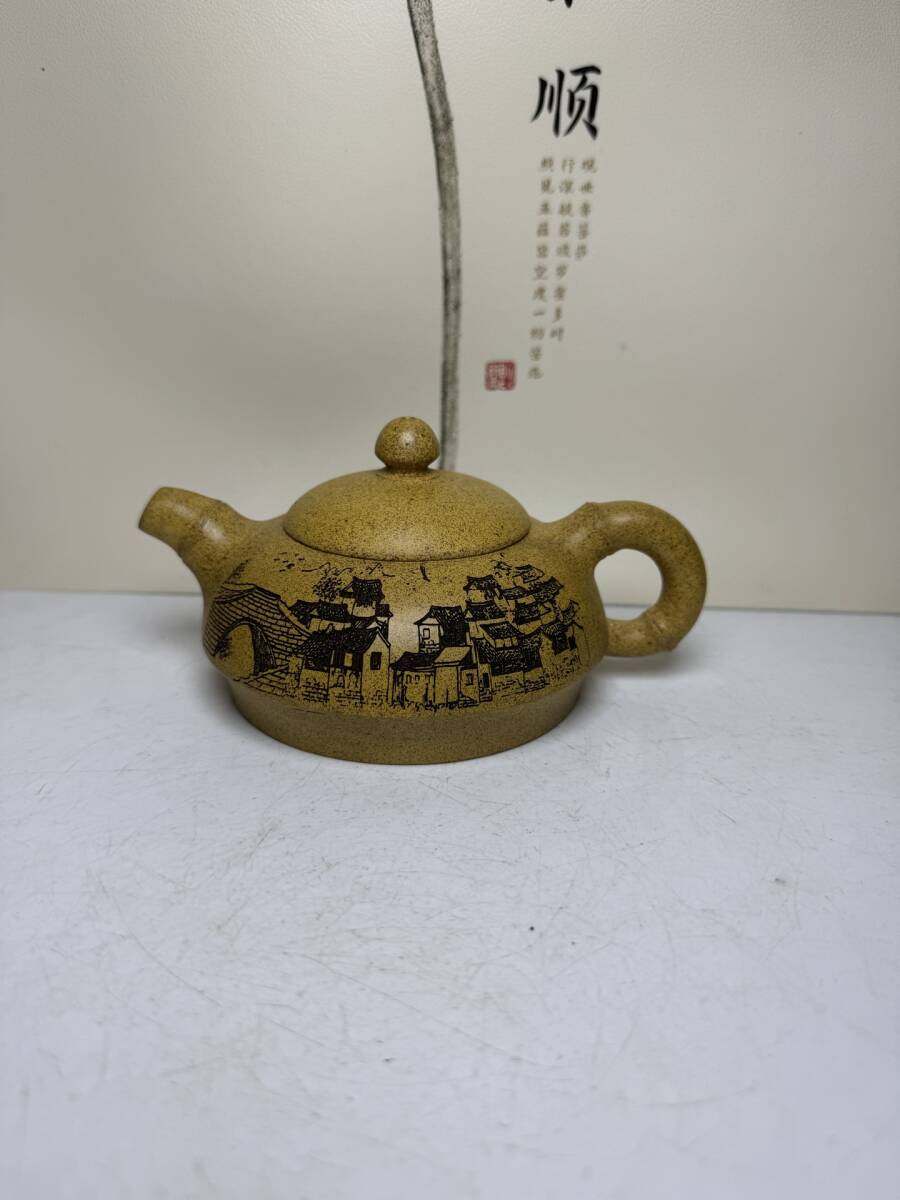 - 【超珍館蔵】紫砂壺 半月壺 李燕華款 段泥 茶具 茶道品 置物 賞物 古賞物 古董品 古美術品 時代物 旧家蔵出 稀少珍蔵品