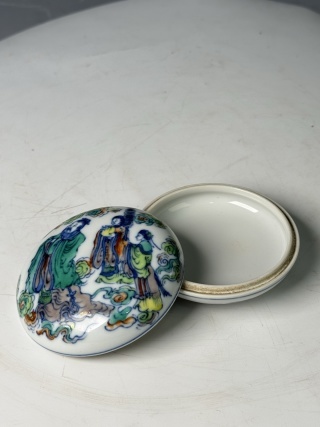 - 『三希堂』 中国骨董 磁器 清時代 [清・康熙闘彩天官賜福印泥箱] 時代物 古陶磁 古賞物 高3.6cm 直径7.8cm C50