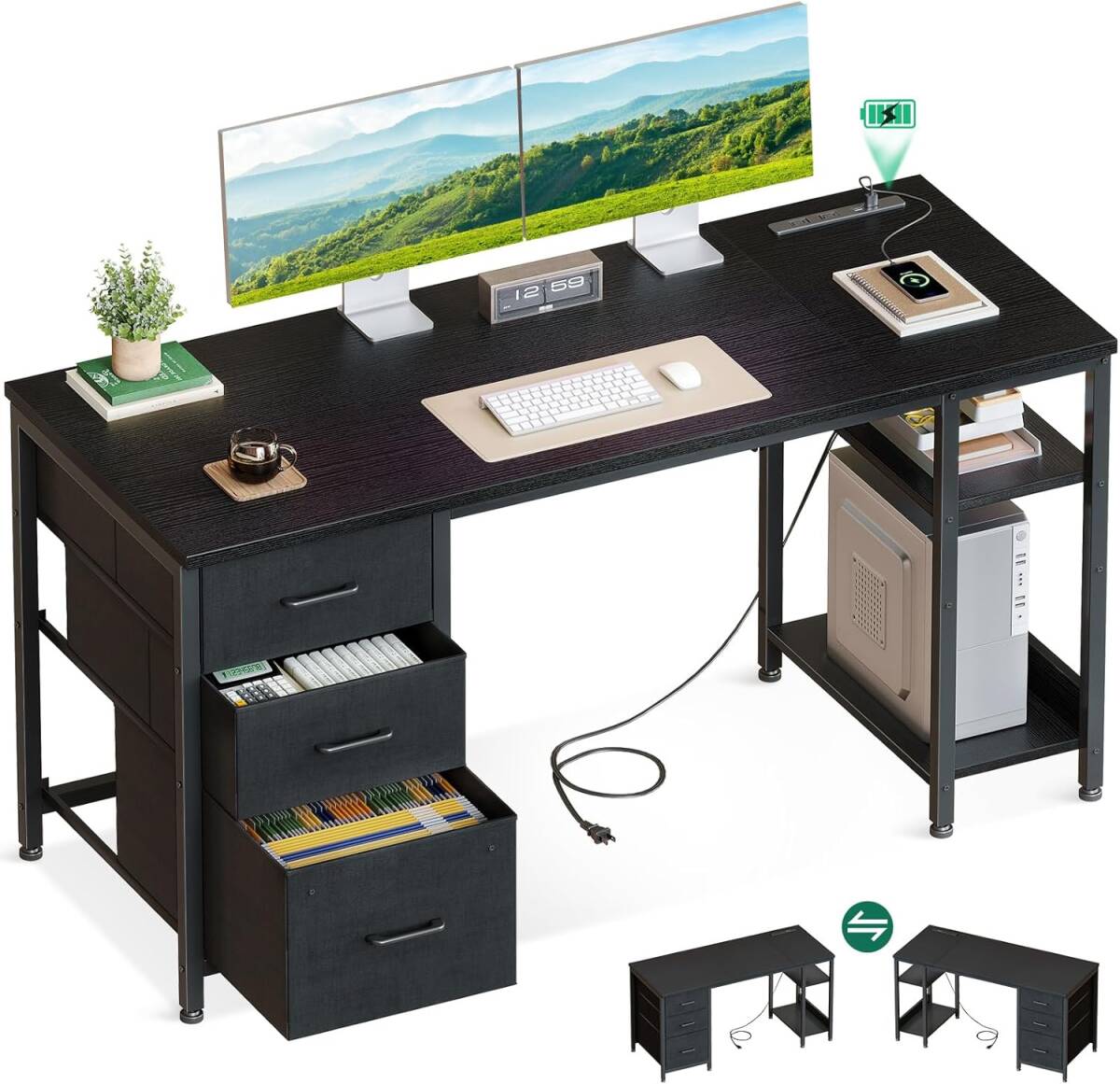 - ブラック色 AODK ゲーミングデスク パソコンデスク 引き出し&コンセント付き 机 pcデスク 幅130cm ラック付き 勉強机 ゲーム