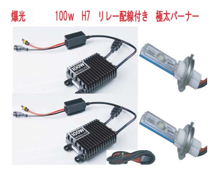 > 爆光! 100W H7 6000K HIDキット リレーハーネス付き 新品・未使用・保証付き