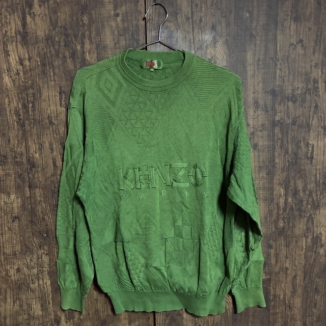 - C44◇KENZO GOLF | ケンゾーゴルフ 立体編み ニットセーター グリーン系 メンズ 4サイズ 中古品