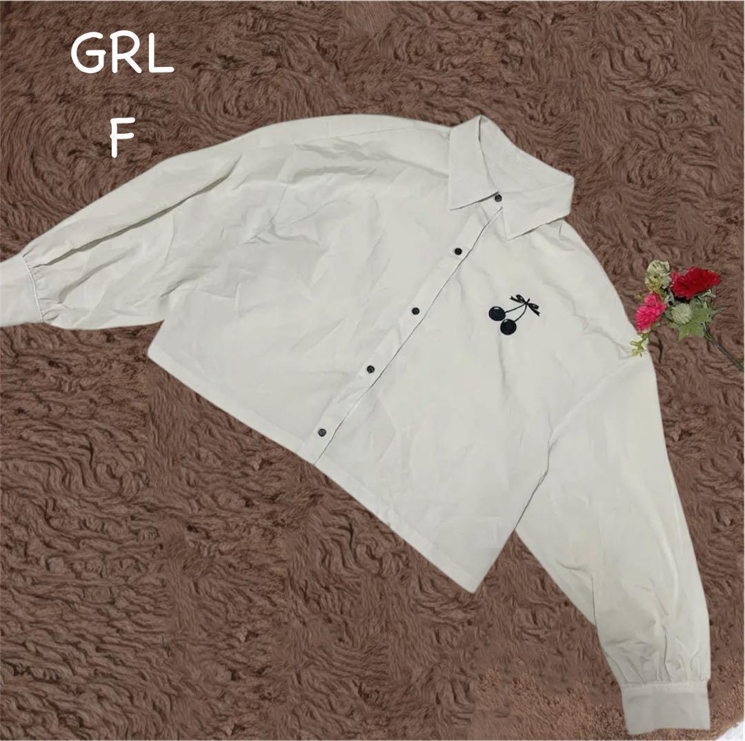 - グレイル【F】チェリー刺繍 クリーム色 ショート丈シャツ 大人可愛い 薄手