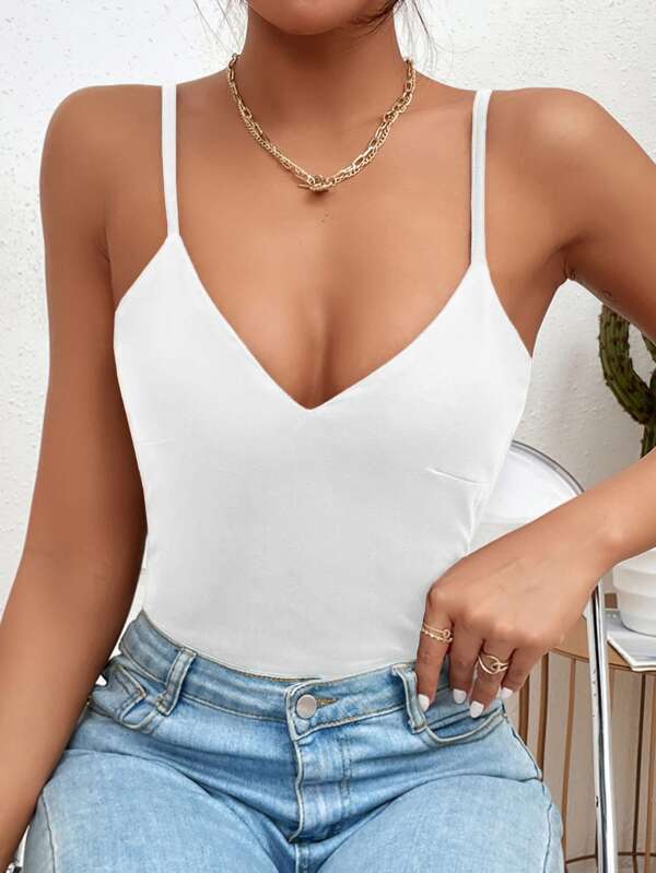 - ボディスーツ 無地柄 スリムフィット キャミボディスーツ