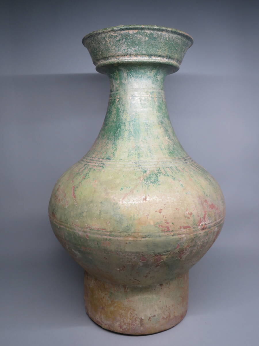 - 「都内コレクター所蔵品」漢時代 緑釉銀化大壷 中国美術 東漢時代 ◆加彩 花瓶 発掘 彩文土器 彩陶壺lot:101101