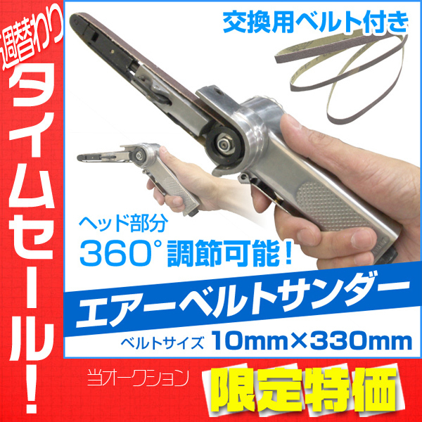 > 【限定セール】ベルトサンダー 360°調節可能 10mm エアツール エアサンダー 交換ベルト付き DIY 工具 塗装 木工 錆 剥がし