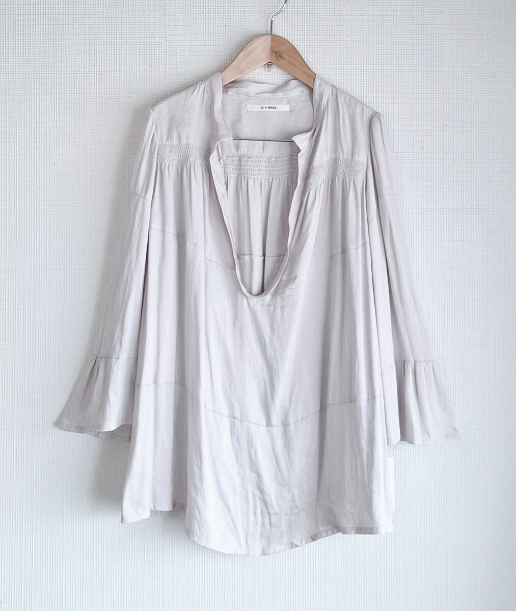 > ★新品タグ付き LE A NOULE レアノーレ 大人綺麗めコーデ 深Uネックプルオーバー とろみ素材 トップス 38 日本製 難あり★