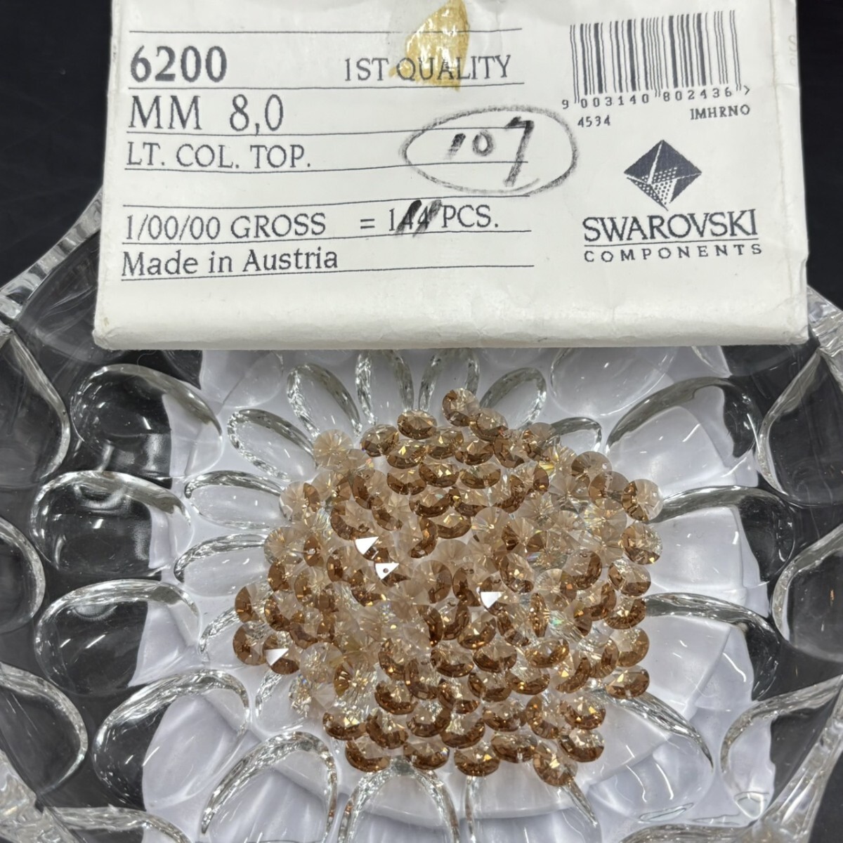 - L548☆ほぼ未使用 SWAROVSKI スワロフスキー ヴィンテージ ルース 6200 約30g 8mm 1gross ライトコロラドトパーズ ビーズ R-148