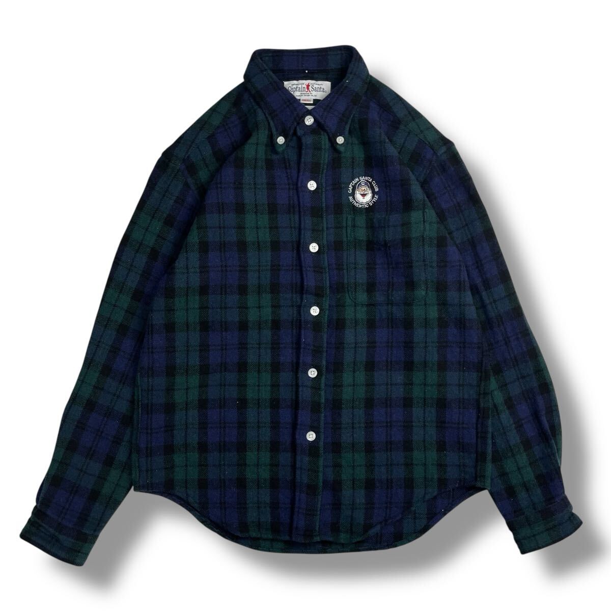 - (TK1012)【美品】 日本製 Captain Santa キャプテンサンタ 長袖 ネルシャツ ブラックウォッチ チェック ウール ワンポイントロゴ S