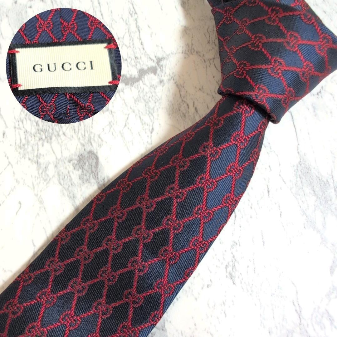 - 【極美品】GUCCI グッチ ネクタイ GG 総柄 ネイビー ジャガード