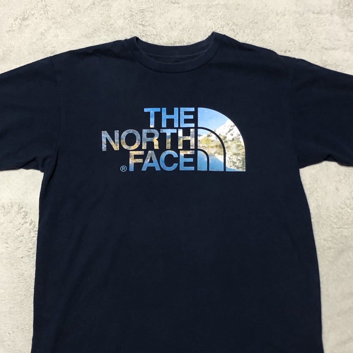 - THE NORTH FACE ザ・ノースフェイス ハーフドーム フォトプリント 半袖Tシャツ ネイビー 人気の大きいサイズ Lサイズ NT31901X