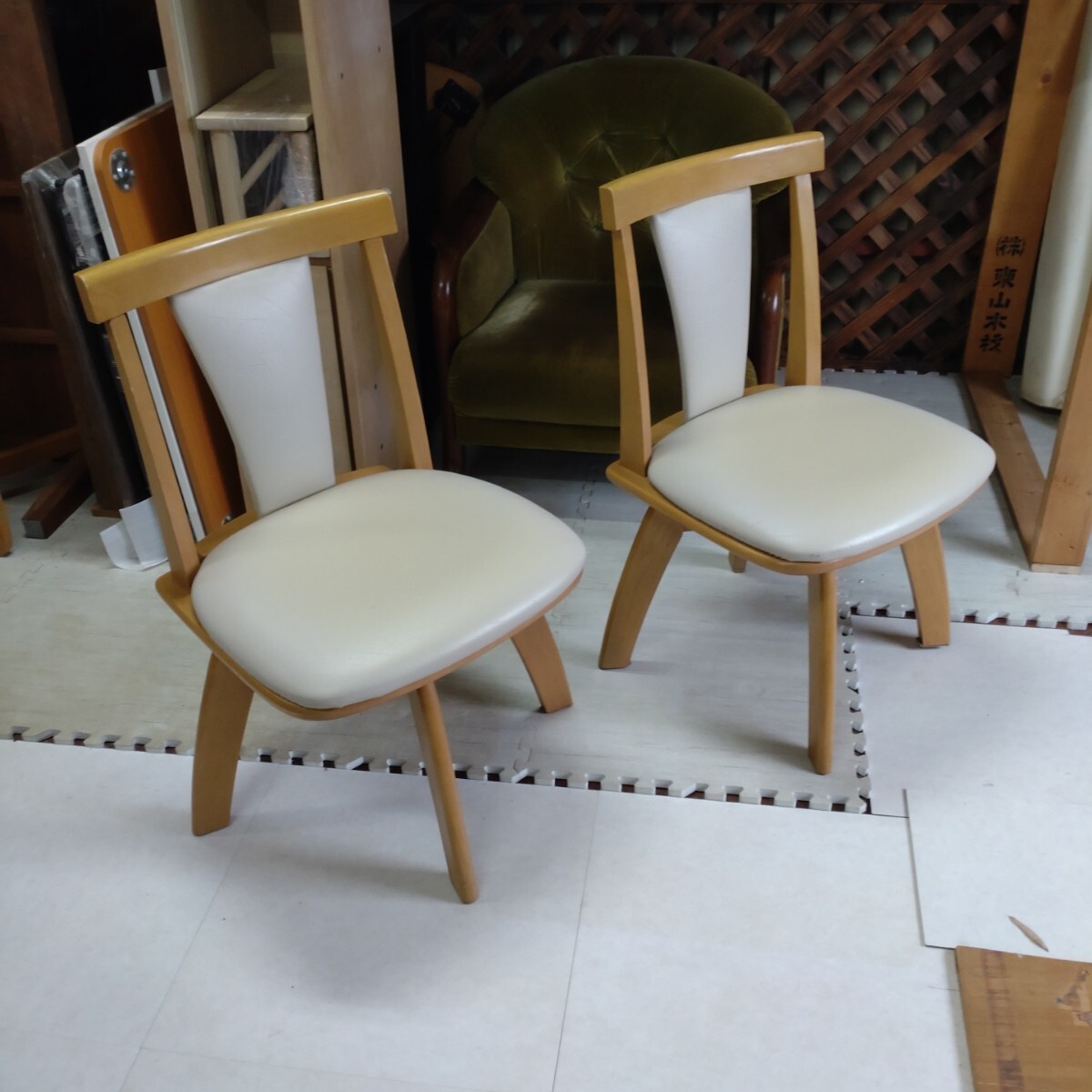 - 【店頭渡し推奨】ニトリ 回転式 ダイニングチェア 2脚 合皮張り 木製フレーム 難あり 中古 現状渡し
