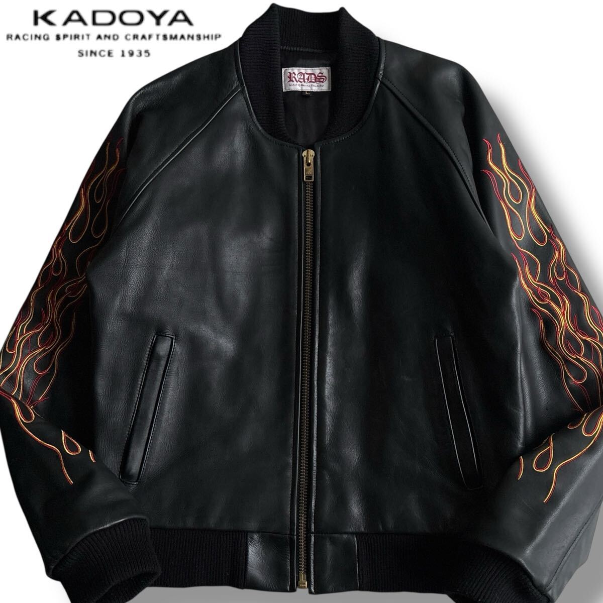 > 極美品■KADOYA RADS【L】希少モデル 袖 フレイム ファイヤーパターン 本革 レザー ライダースジャケット ボンバージャケット ブラック 黒