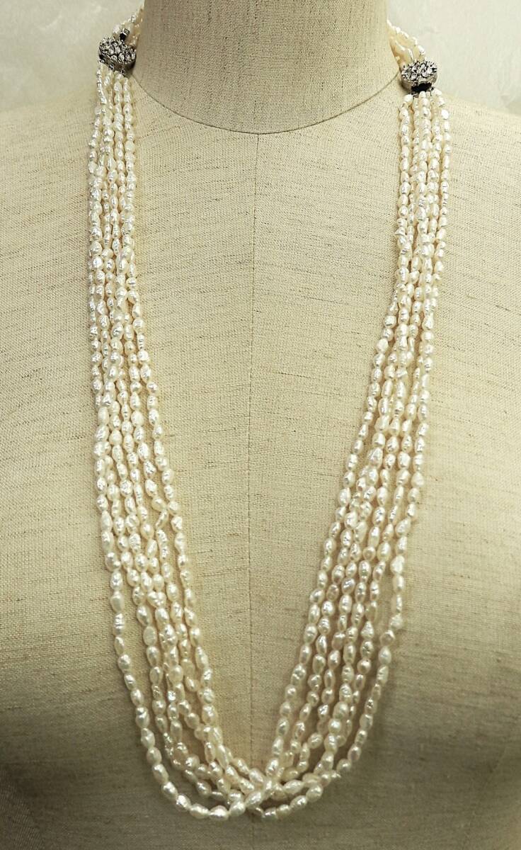 - SILVER パール・真珠 池蝶 ブレス 6連ネックレス 73cm 約70.9g 現状品 売り切り