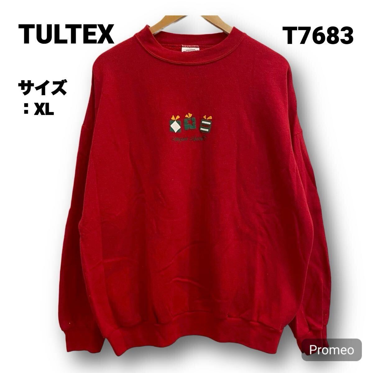 > 【T7683】 TULTEX タルテックス スウェット トレーナー サイズXL レッド 赤 フロントデザイン フロントプリント メンズ トップス 最落なし