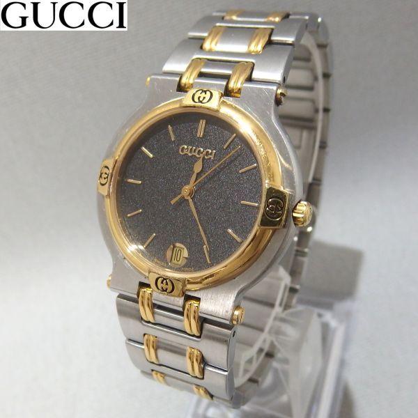 > ★GUCCI 9000M デイト クォーツ 腕時計 コンビ ゴールド ヴィンテージ アンティーク オールド グッチ★