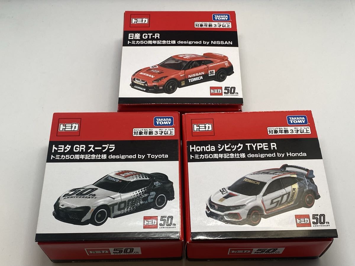 > トミカ50周年記念仕様 3種類まとめて 日産 GT-R、Honda シビック TYPE R、トヨタ GR スープラ