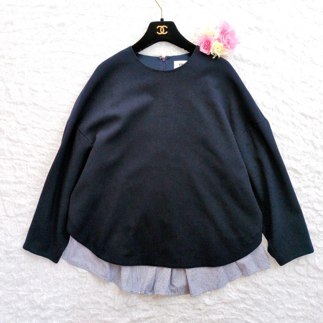- ENFOLD ストライプドッキングプルオーバートップス トップス エンフォルド 長袖 36 S