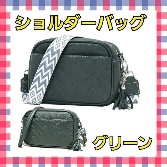 - ショルダーバッグ グリーン キルティング ボディバッグ ミニポーチ ベルト調整可