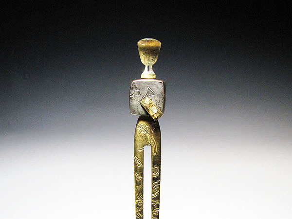 - 【桃】アンティーク髪飾り:金工三味線簪