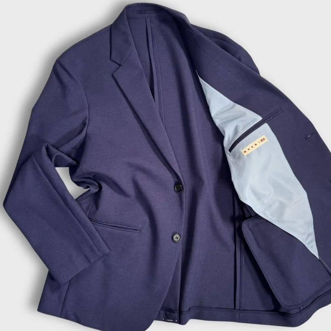 > 美品 L ユニクロ マルニ テーラードジャケット MARNI ネイビー メンズ UNIQLO ビジネス カジュアル ストレッチ アンコン
