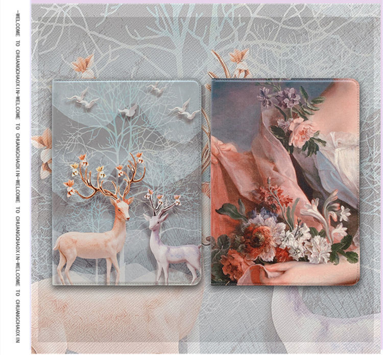 - iPad 10.2インチ(第7世代/2019)ケース タブレットPC 手帳型 手帳型 スリープ機能付き 鹿&花 おしゃれ