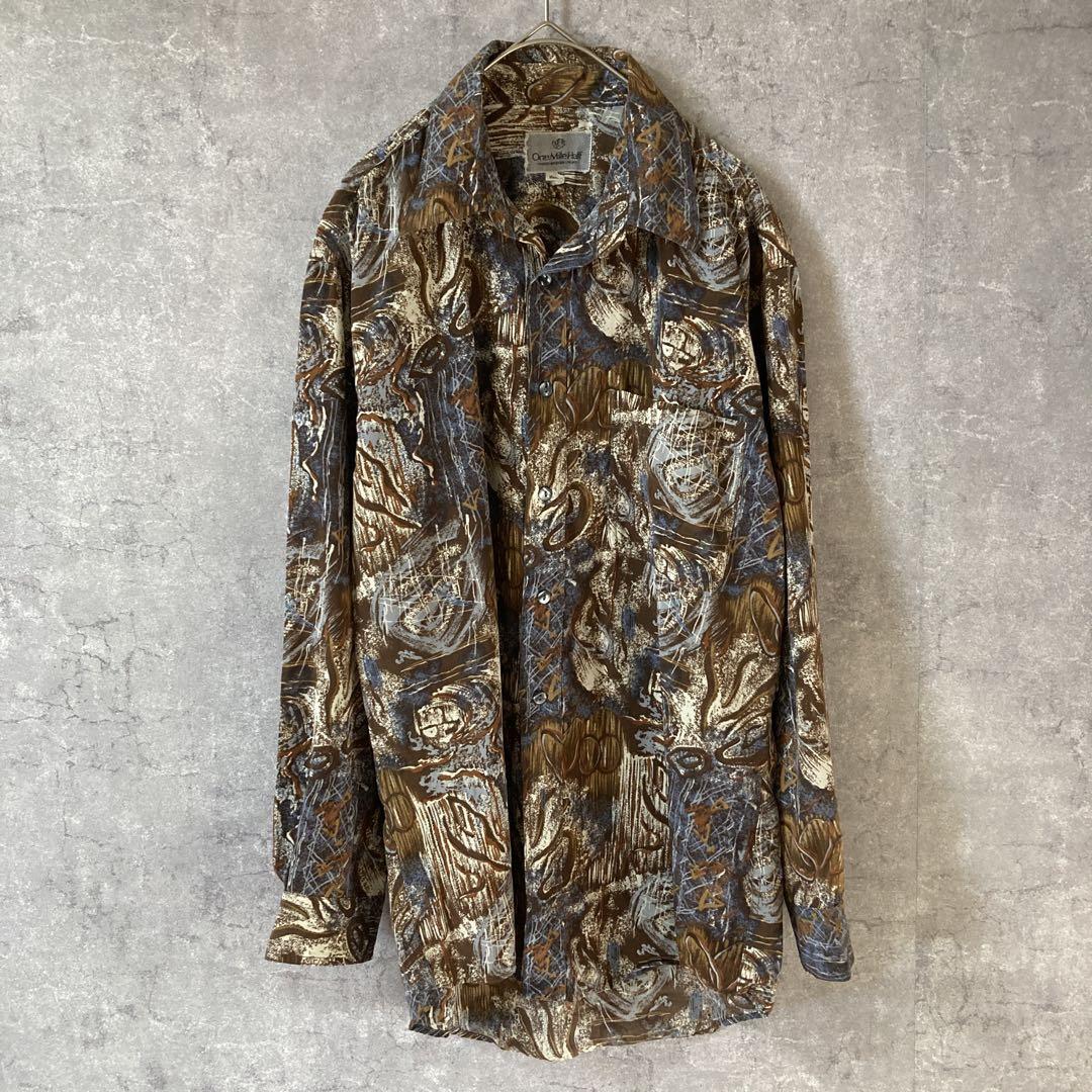 - アートデザインシャツ 長袖 総柄 柄シャツ ヴィンテージ Mサイズ
